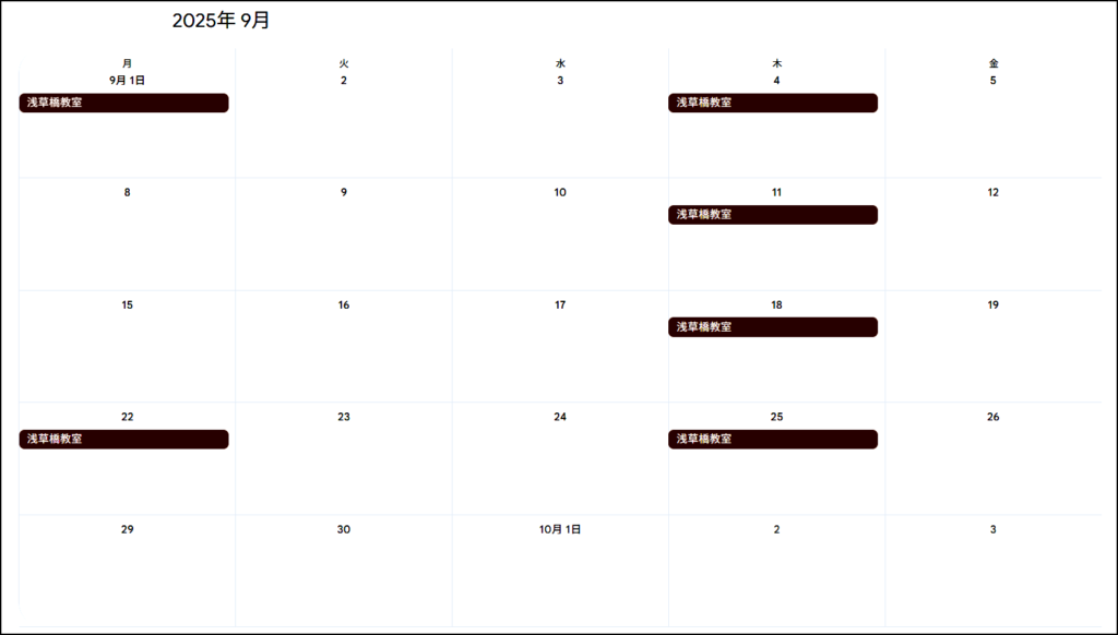 ※ 月曜日午前中、大人の一般部を開講いたしました。10時~12時です。