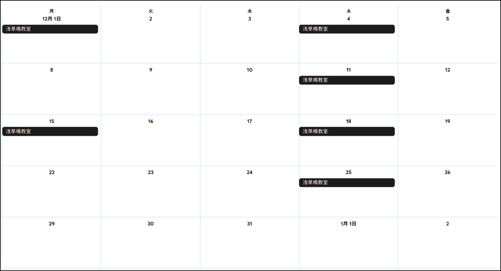 浅草橋教室 12月の教室スケジュール